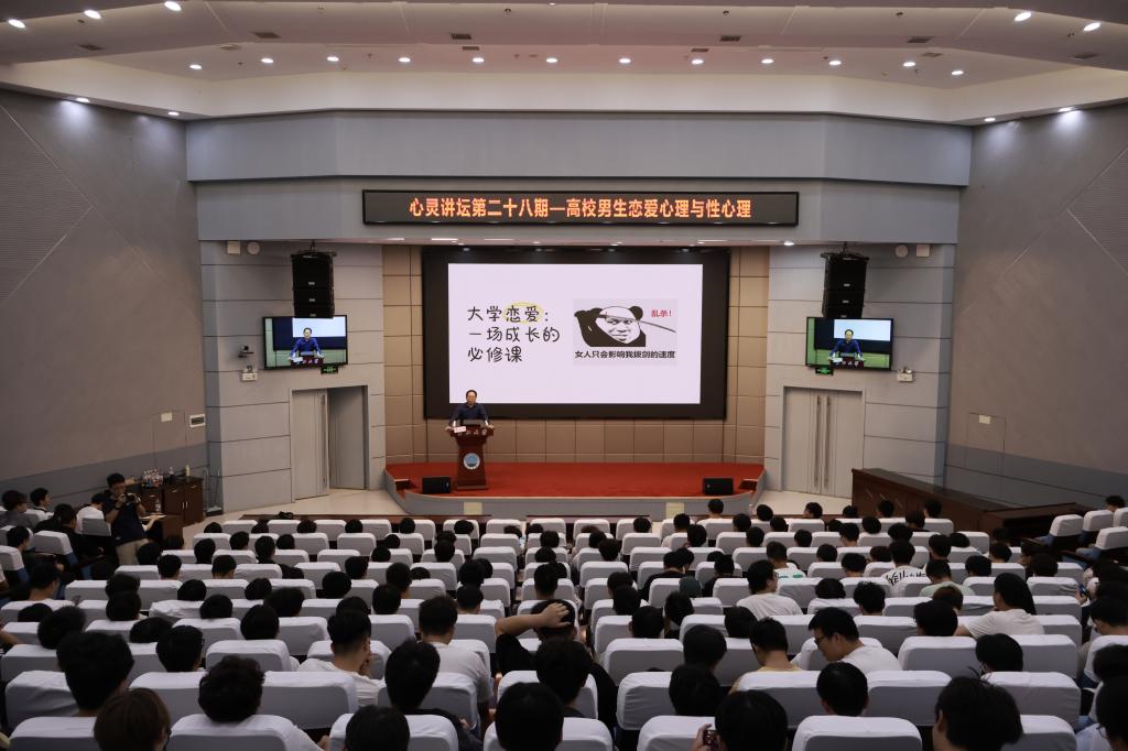 讲座现场气氛热烈,不时迸发出阵阵欢笑与掌声。雷光辉老师通过幽默风趣的语言与生动形象的比喻,专业而温暖地解答了男大学生在恋爱过程中经常遇到的困惑,包括“大学恋爱的必要性、大学恋爱为什么很难持久、维持恋爱的重要因素、如何树立健康的性观念”等。他还结合当代大学生的生活实际和个人积累的丰富心理咨询案例,引导同学们要以理性、负责任的态度去对待性与情感问题。