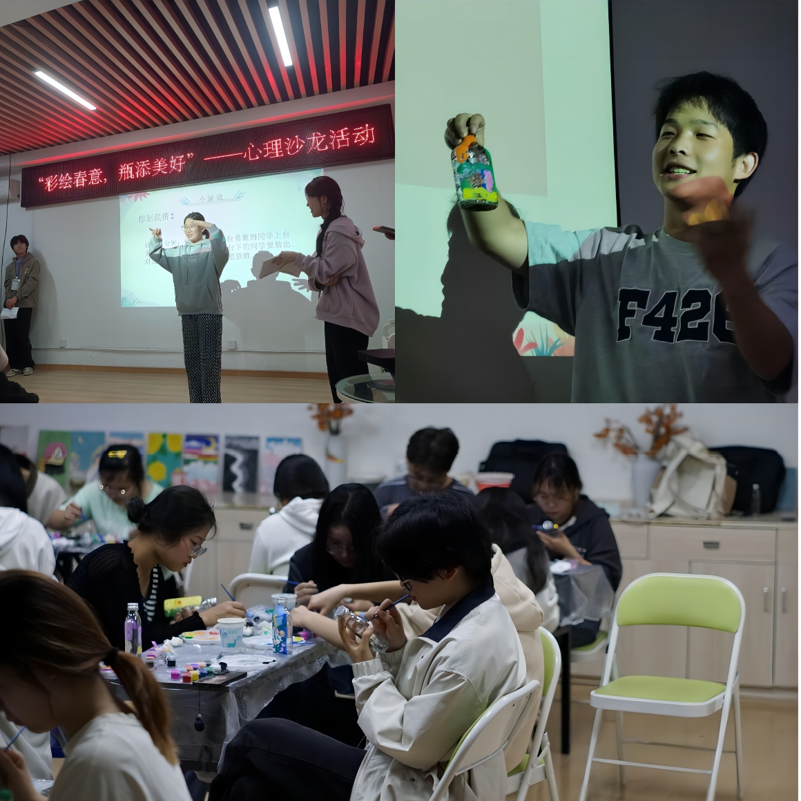 本科生院讯(通讯员 谭思妍 卢旗放)“把烦恼装进瓶肚,用色彩装点人生”。4月12日晚上,长江大学2024年春季学期“心理沙龙”系列活动之“彩绘春意,瓶添美好”分别在荆州东、西校区顺利举办,共计吸引了60余名同学热情参与。